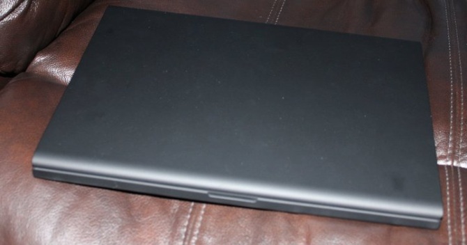 As you can see, there aren’t any logos on top or anything. The laptop has an interesting finish - it almost feels like soft plastic or something. I don’t know how to describe it.